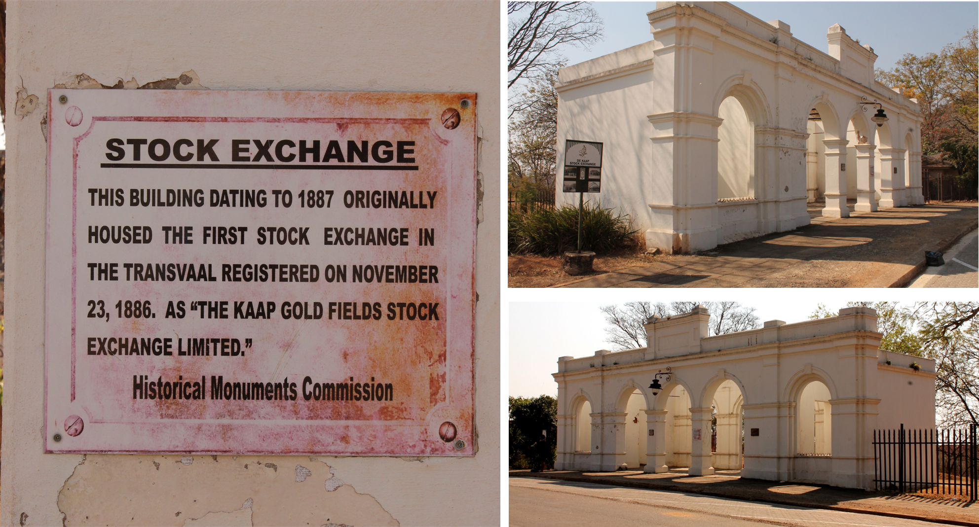 Like many hastily-built boomtown structures, the earliest stock-exchange premises were vulnerable to fire. Local guides and heritage summaries report that the first stock-exchange building was destroyed by fire, while the later 1887 De Kaap Stock Exchange building survived longer but its use as an exchange was short-lived.