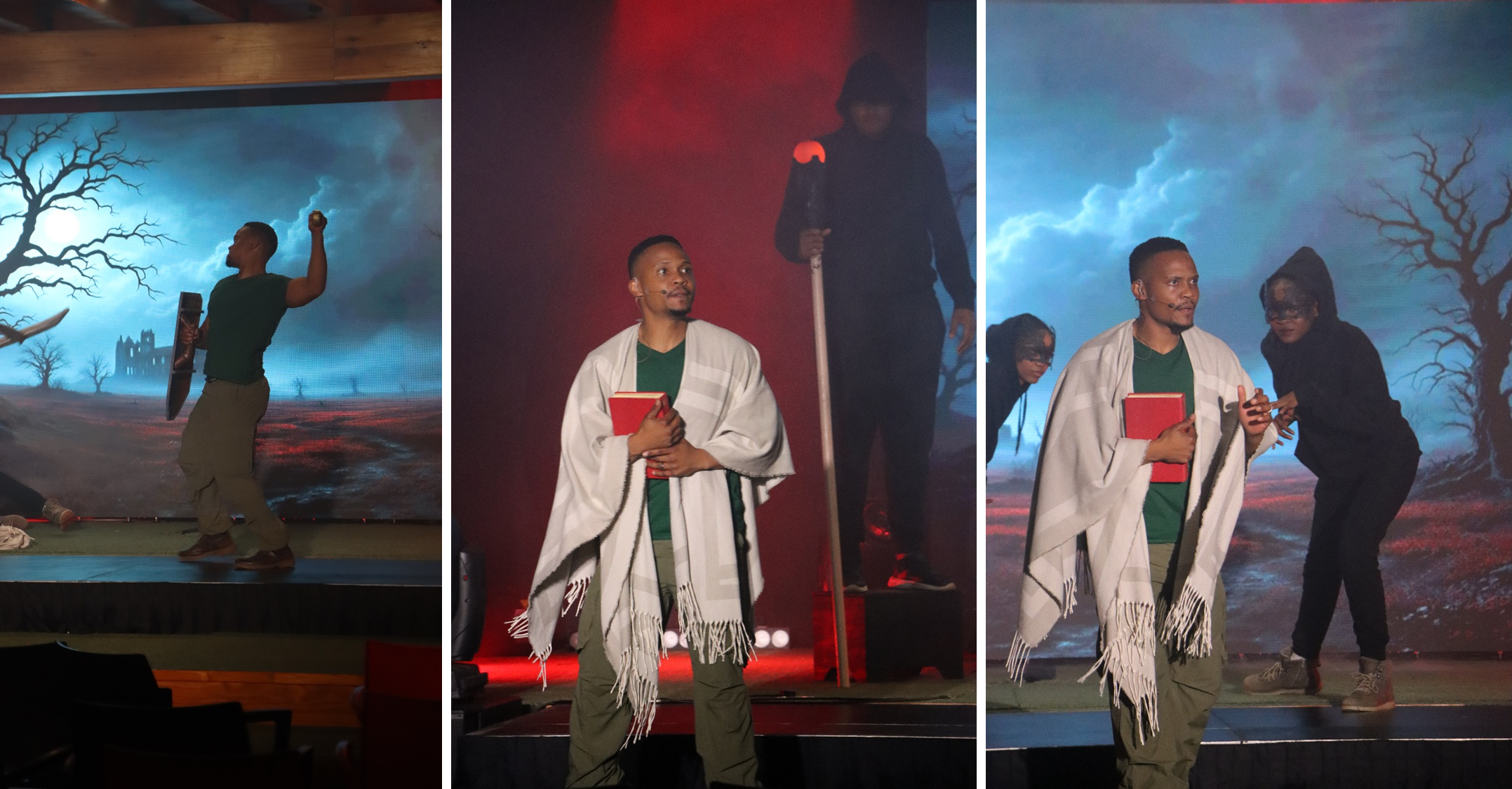 Die hoofrol van Christian is vertolk deur Rhulani Mkhatswa, ’n onderwyser by Hoërskool Sabie, wie se toewyding en talent die produksie op sy skouers gedra het. Cornel Lombard het as evangelis het met haar selfvertroue en stem die hele span verder geïnspireer.