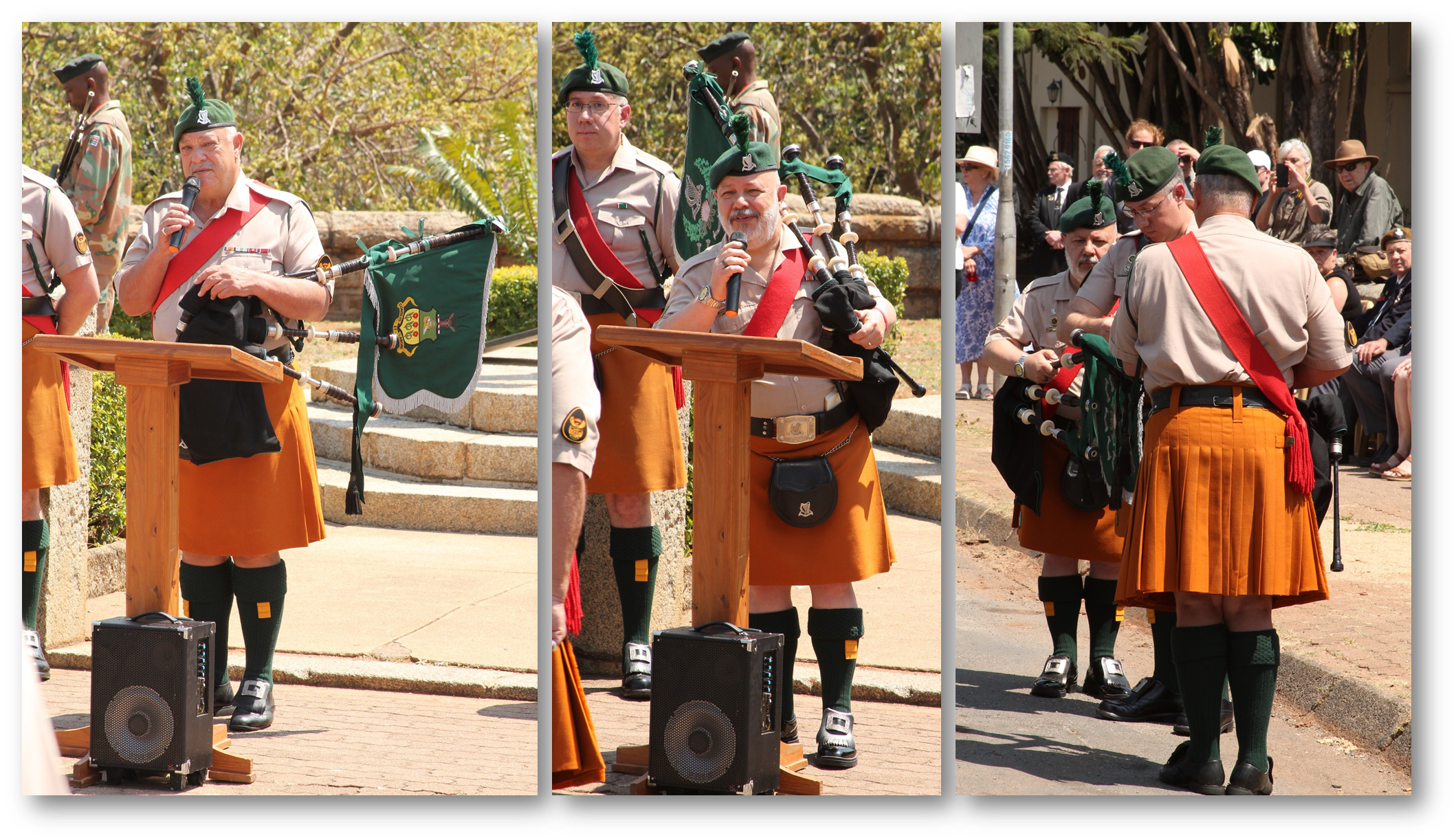 This year’s parade carried special meaning. After an extraordinary 46 years of service as Pipe Major, Chris Herwill officially handed over leadership to David Harris in a moving ceremony at the Cenotaph. Herwill has been the longest serving Pipe Major at present in the SANDF.